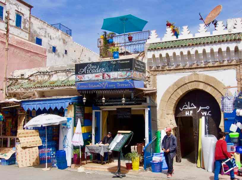 Ich gehe vorbei am Café Taros über den Place Moulay Hassan vor der Medina zum Hafen. Hier werde ich von einer kräftigen Brise und dem Geschrei der Möwen empfangen.