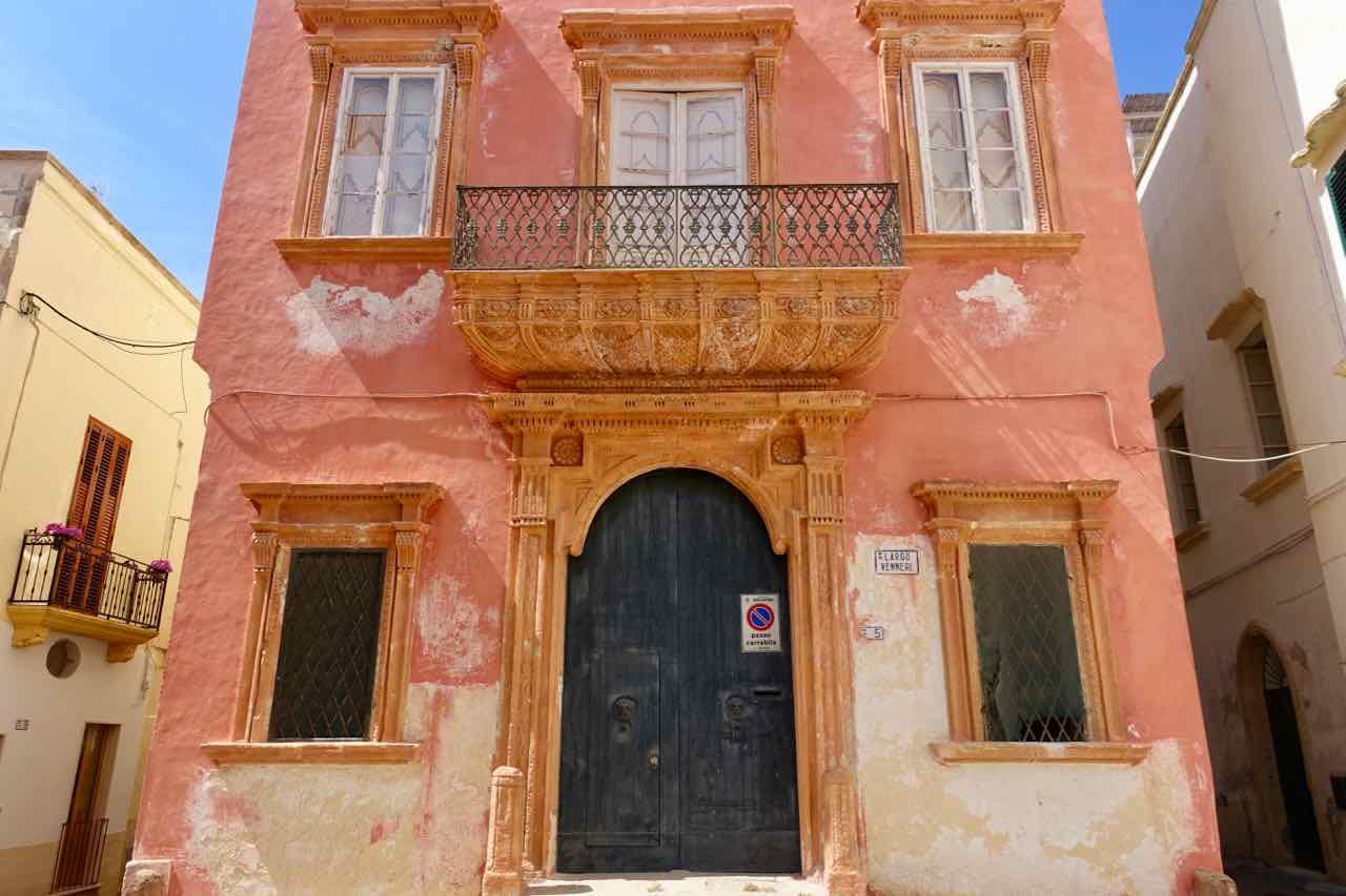 Meine Unterkunft, das Bed & Breakfast Salentus, liegt mitten in der Altstadt in einer kleiner Fussgängergasse. 110 € (EZ 90€). Dachterrasse mit Whirlpool. Via XXIV Maggio 6. Netter Besitzer, der 30 Meter weiter sein Café hat, in dem man das eingeschlossene Frühstück bekommt.