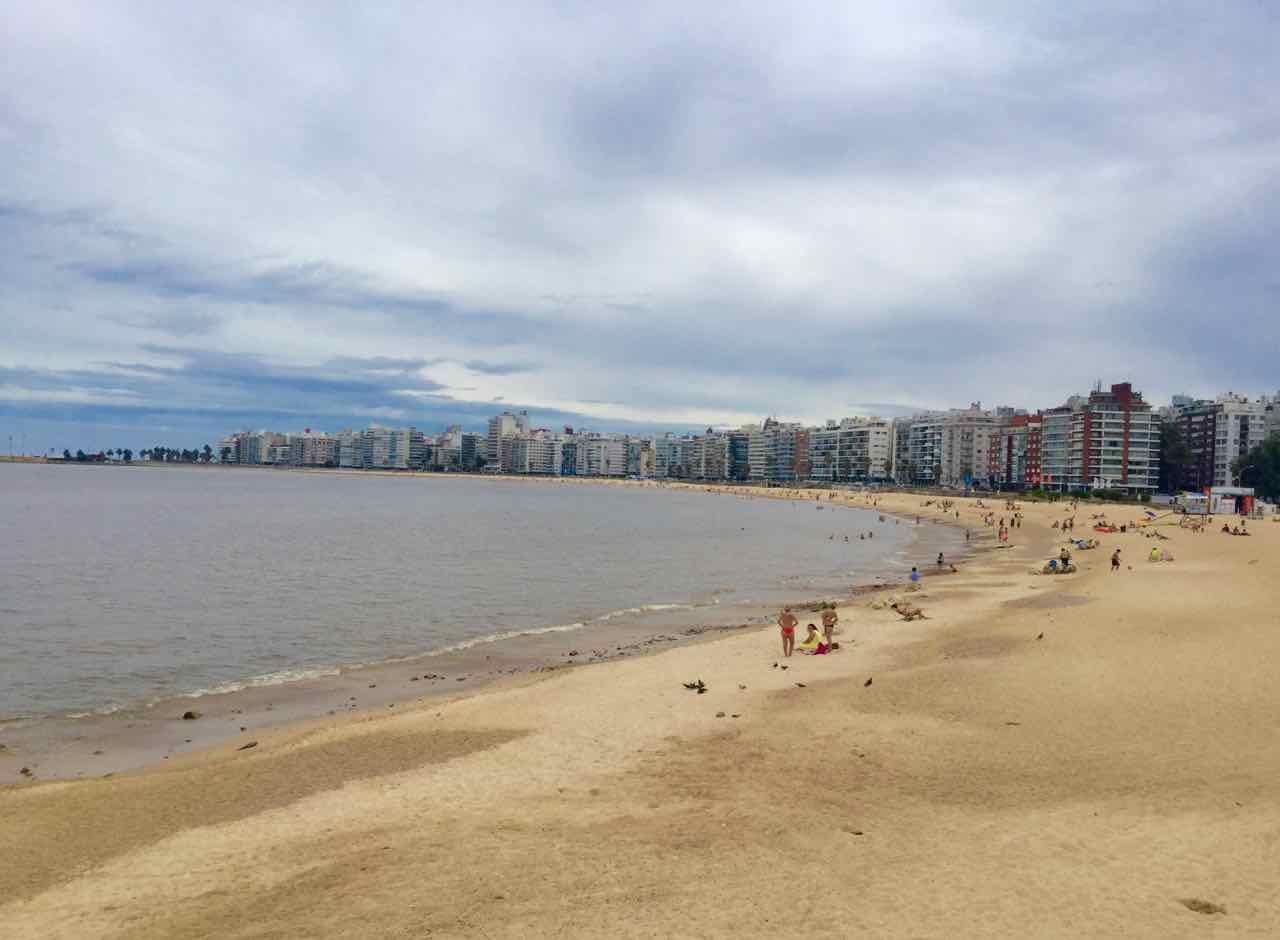 Zum Glück habe ich mich noch mal umgehört und erfahren, dass es im Stadtteil Pocitos einen weiteren Strand gibt, eine kurze Busfahrt von der Altstadt (Bus 116, von der Av San José). Hier vermittelt Montevideo ein komplett anderes Bild.