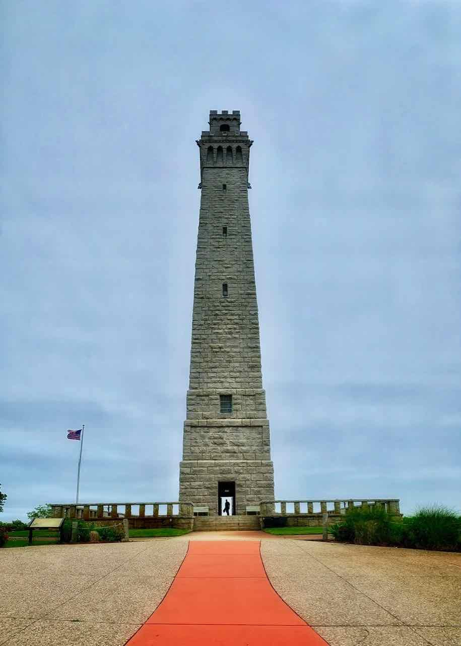 Und da ja hier in Provincetown vor 400 Jahren die Pilgerväter ihre erste Begegnung mit der Neuen Welt hatten, gehe ich dann zum Pilgrim Monument. Das wurde von 1907 — 1910 gebaut und soll an die erste Anlandung der Mayflower am 11. November 1620 erinnern. In 77 Metern Höhe habe ich einen gigantischen Überblick über Cape Cod.