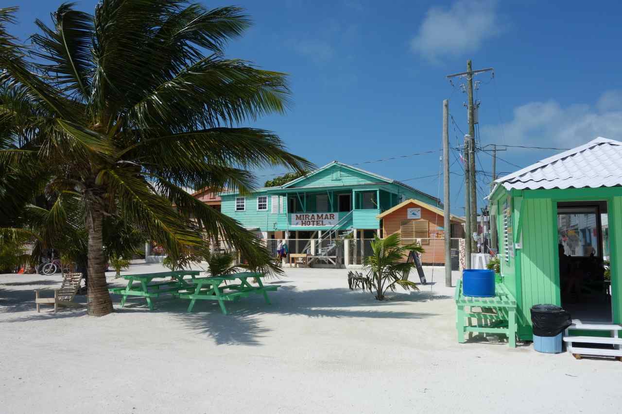 Caye Caulker, 1.500 Einwohner. Auf dieser Insel war ich schon mal Anfang der 70ger Jahre. Damals gab es nur abends für 3 Stunden Strom und das Wasser zum Waschen musste aus einem Brunnen hochgeholt werden. Ich wohnte bei Tony Vega. Er ist heute 96 Jahre und das Haus sieht ähnlich alt aus. Es scheint in der Zwischenzeit nichts dran gemacht worden zu sein. Die Zeit ist stehengeblieben. Kein Wunder, dass es unbewohnt ist.