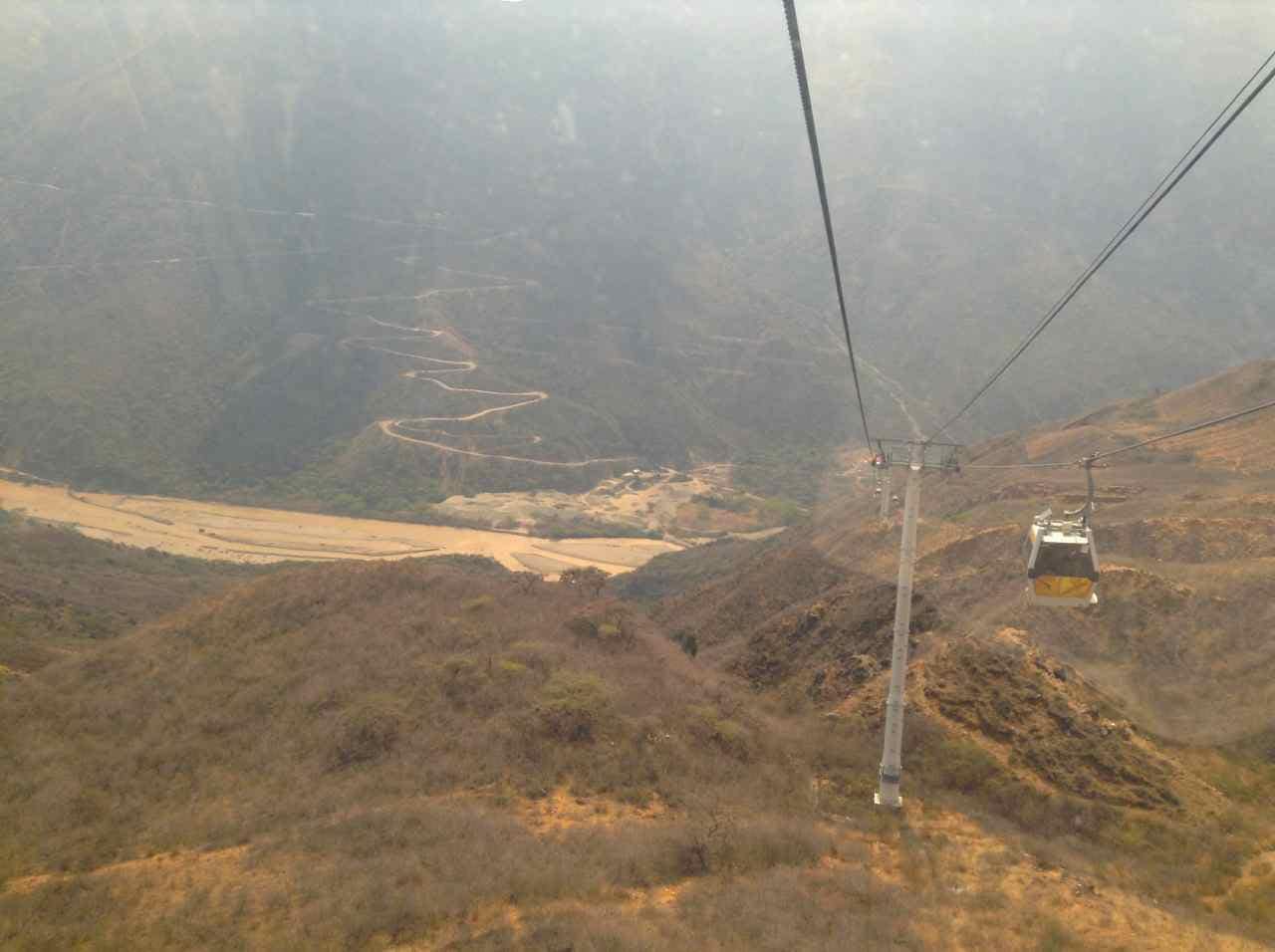 Die beiden gegenüberliegenden Gipfel sind mit einer Seilbahn (teleférico) verbunden, d.h. man fährt in einer Gondel in einem Rutsch erstmal auf der einen Seite nach unten ins Tal, um dann wieder ohne Stop auf der gegenüberliegenden Seite bis zum Gipfel zu fahren.